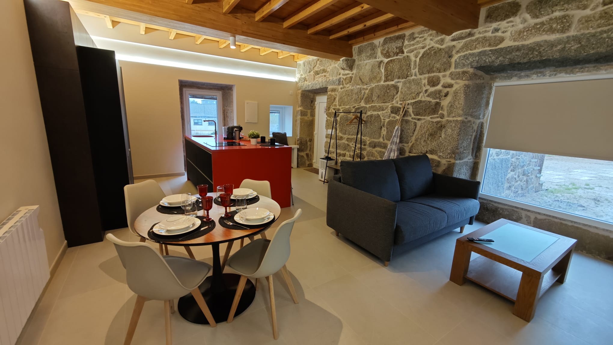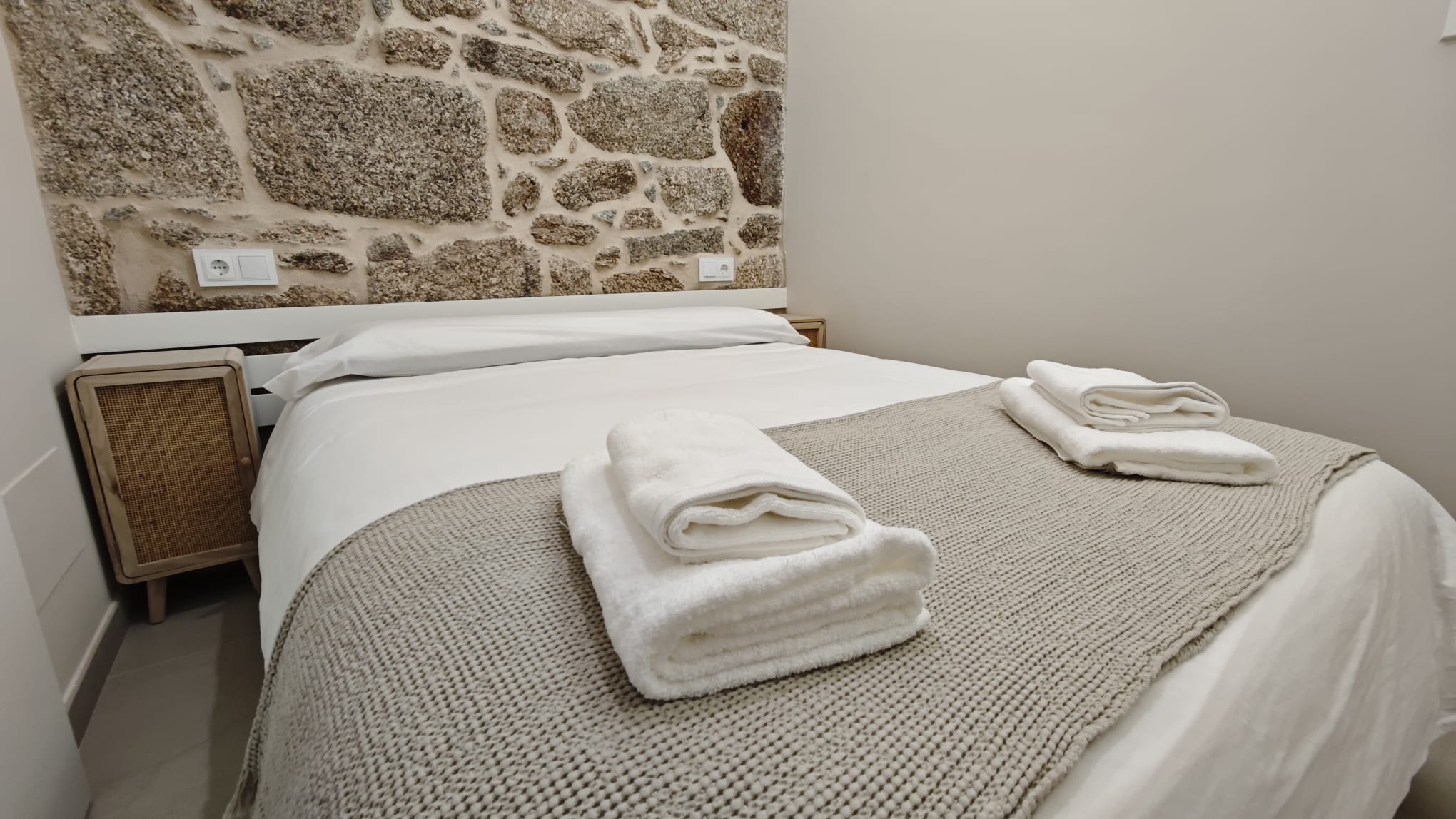 Uno de los elementos más especiales del apartamento es su original pared de piedra, que conserva la esencia y el carácter de la arquitectura tradicional gallega, aportando personalidad y calidez al espacio.